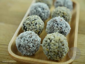 Khajoor Balls (dates) coated with coconut and sesame seeds