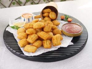 -Sprinkle paprika powder & serve with tomato ketchup!