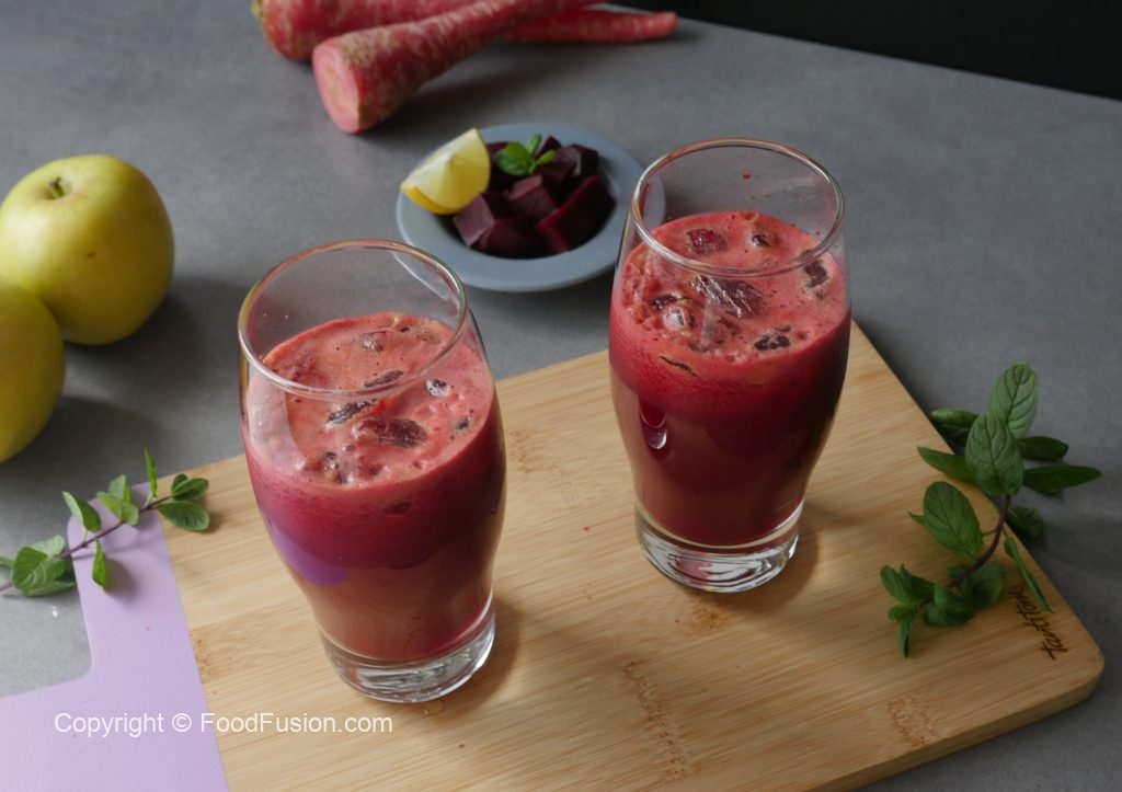 In juicer machine,add apples,beetroots,carrots,ginger and extract juice.