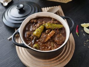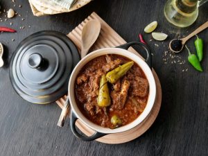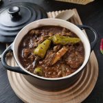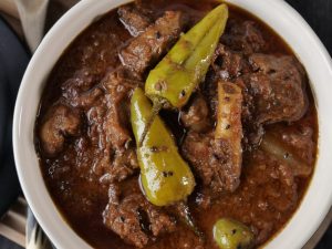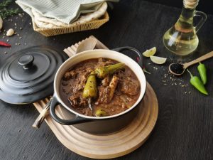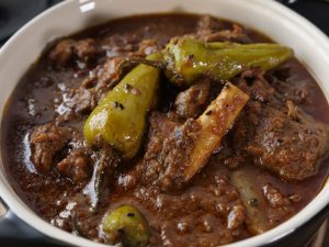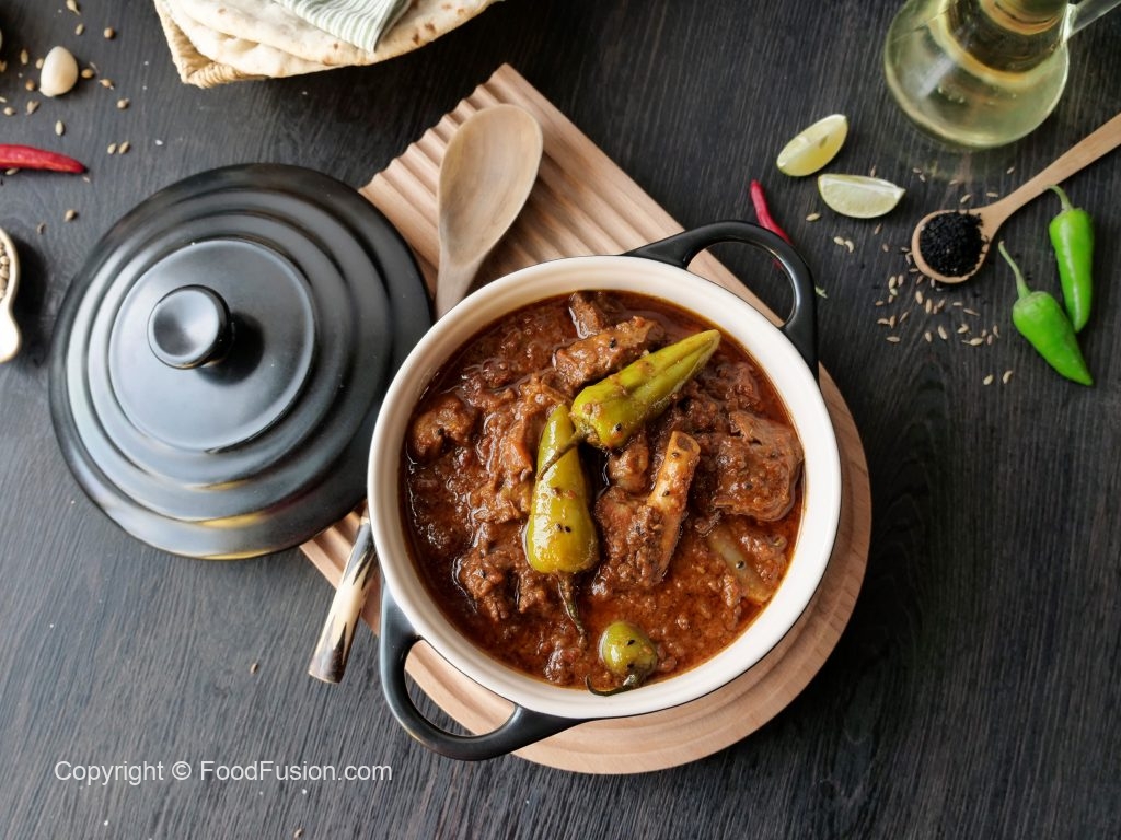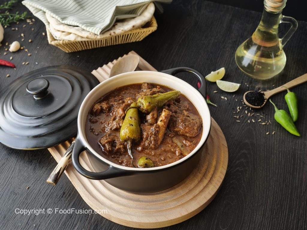 Pot mein stuffed hari mirchein dal dein aur halki ancch per 6-8 minutes kliya dum per rakh dein.
