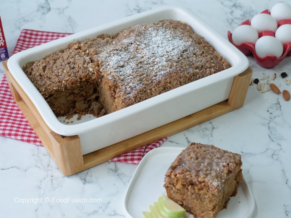 Add cinnamon coated apples & fold gently with the help of spatula.