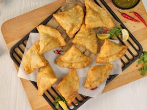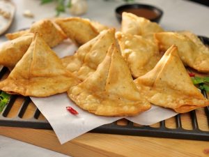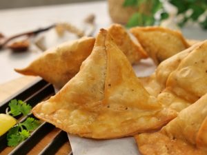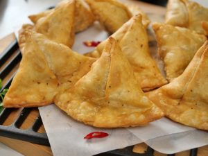 -Fill the cone with prepared potato filling (1-2 tbs),apply water on the edges & bring the edges together and seal edges properly with water (makes 18).