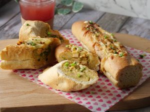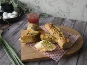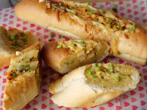 Place French baguette on a baking tray lined with butter paper & grease with butter.