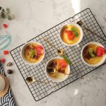 Place ramekins in a baking safe pan,add prepared custard mixture ( ½ Cup) in each ramekin & sprinkle nutmeg powder.