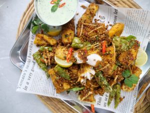 -In a bowl,add fried fish,prepared balochi tikka masala,fried green chillies & garlic,lemon juice, ginger,fresh coriander,cover & let it rest for 5 minutes & serve!