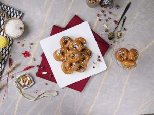 -Chota dough (42g) la ker ball bana lein aur thumb ki madad sa center mein indent or depression bana lein (makes 17-18).