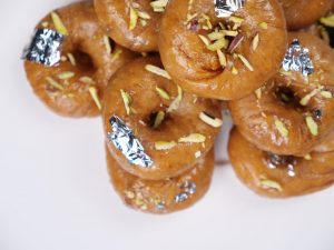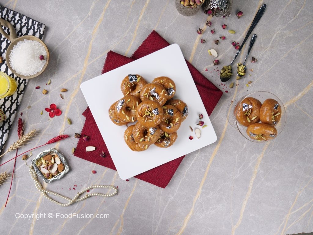 -In warm sugar syruy,add balushahi & let them soak for 30 minutes.