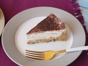 Take an 8 inch springform pan and add and spread crumbled biscuits, press & set the layer.
