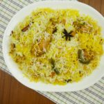 Boil the soaked rice with lemon juice, star anise and salt till ¾ th done and set aside.