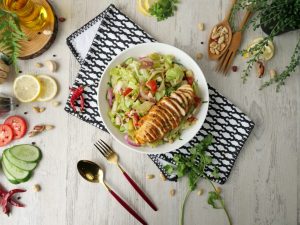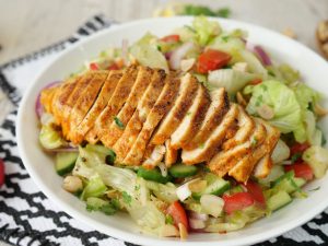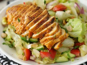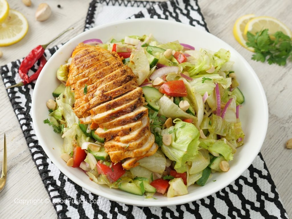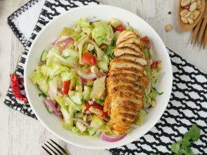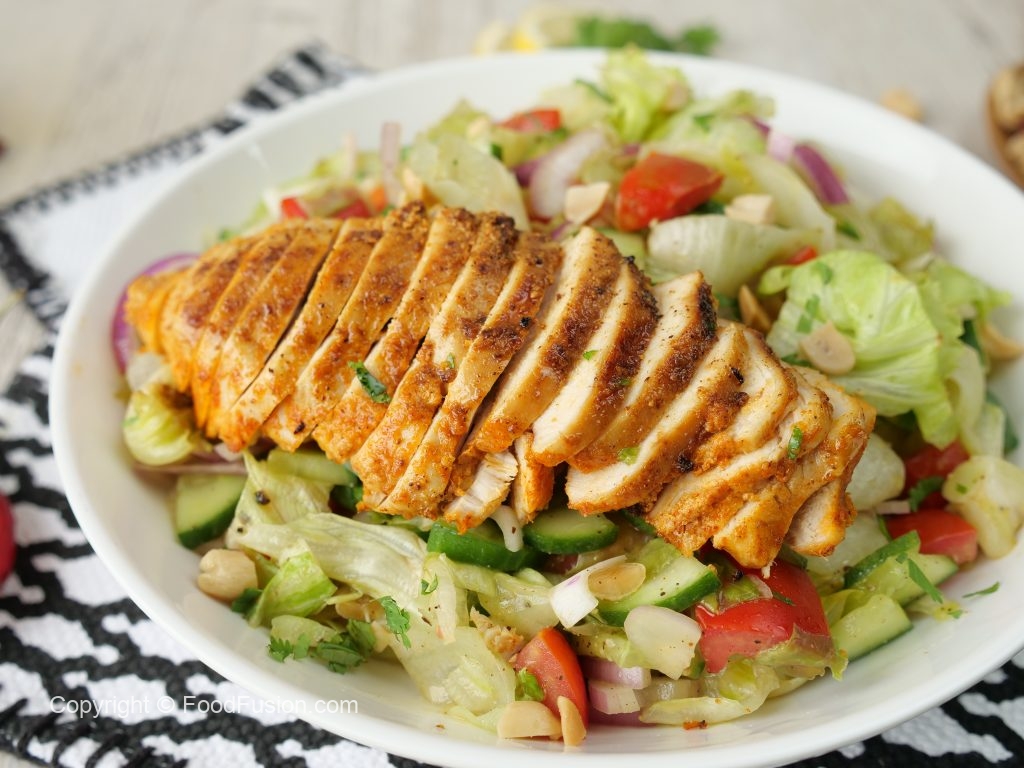 -Serve salad with grilled chicken,garnish with fresh parsley & peanuts!