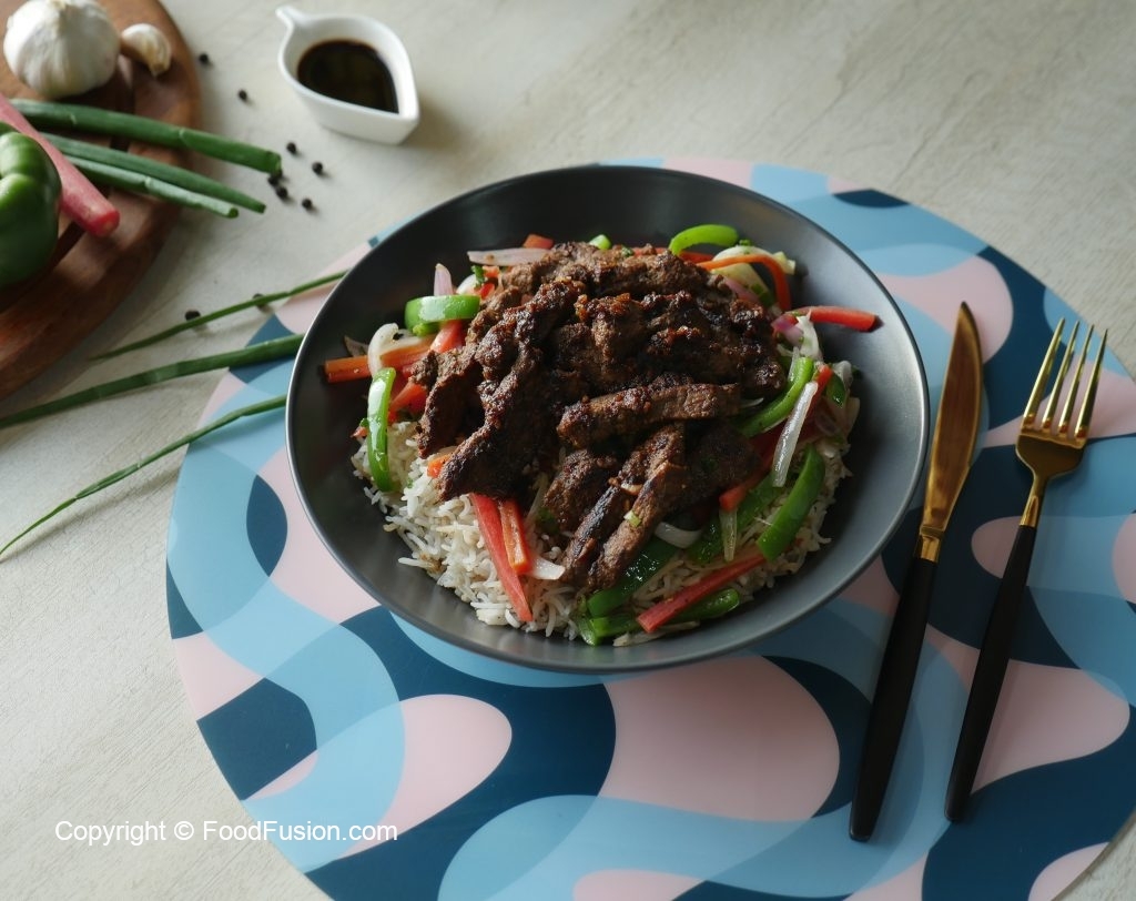 A complete meal that everyone will love. Try Beef Steak Strips Rice Bowl and enjoy your meal. #HappyCookingToYou #RafhanCornOil #FoodFusion