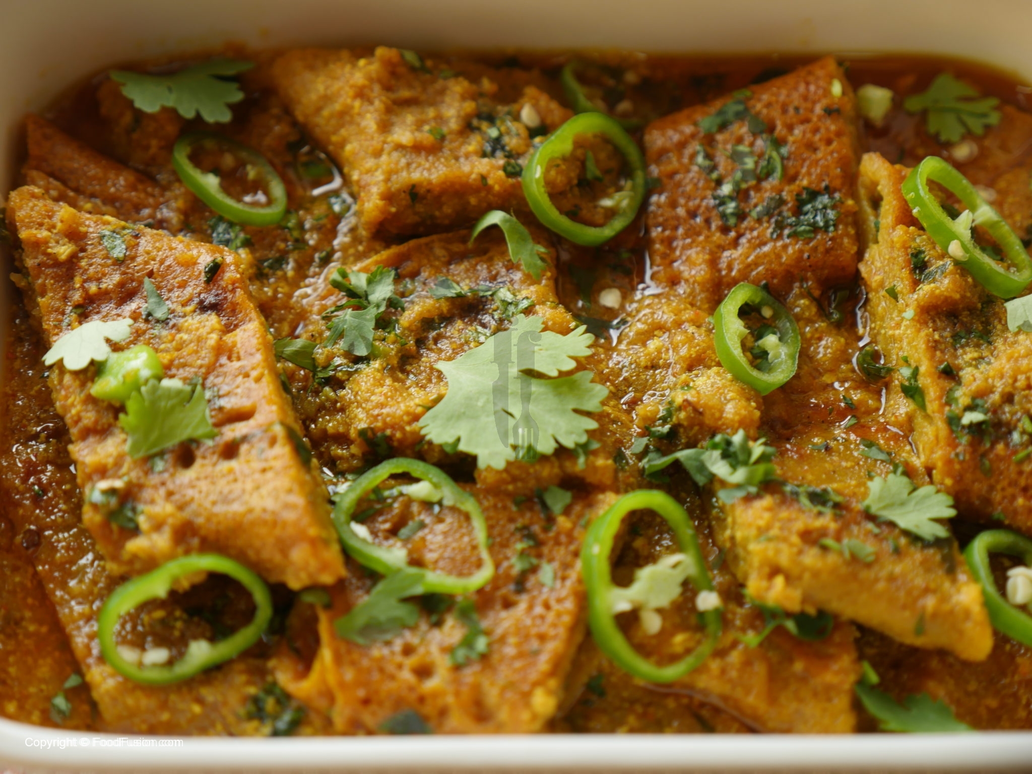 By using non-stick pan,pour batter,sprinkle green chili and coriander,fold and press,cook until light brown and set aside.
