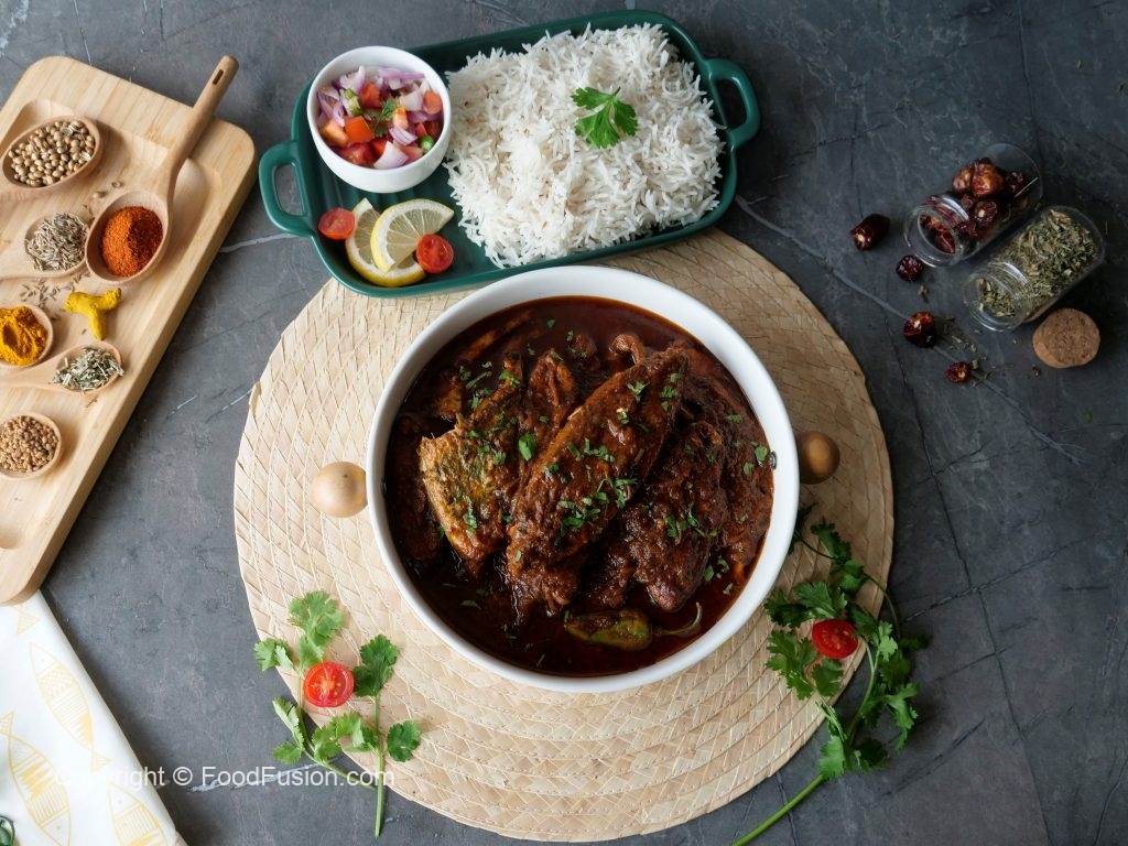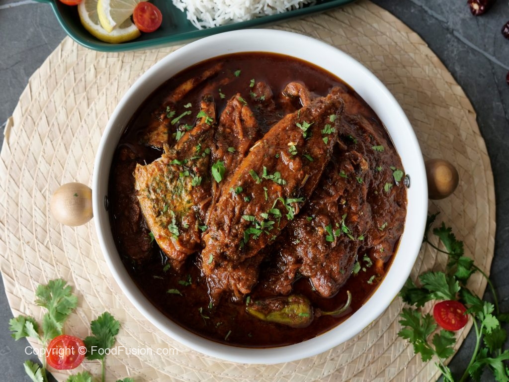 Add dried fenugreek leaves,fresh coriander and green chillies,cover & cook on low flame until fish is tender (12-15 minutes).