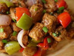 Is he karhai mein pyaz,red bell pepper aur shimla mirch dal ker 1-2 minutes kliya sauté ker lein aur side per rakh dein.