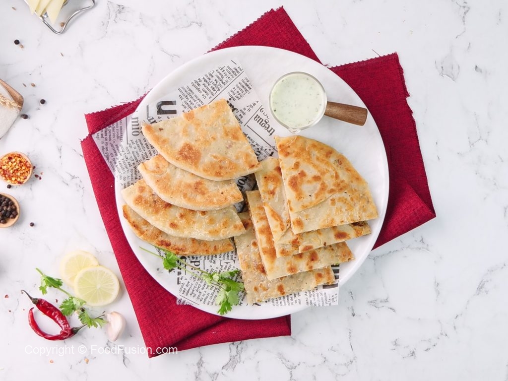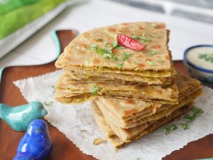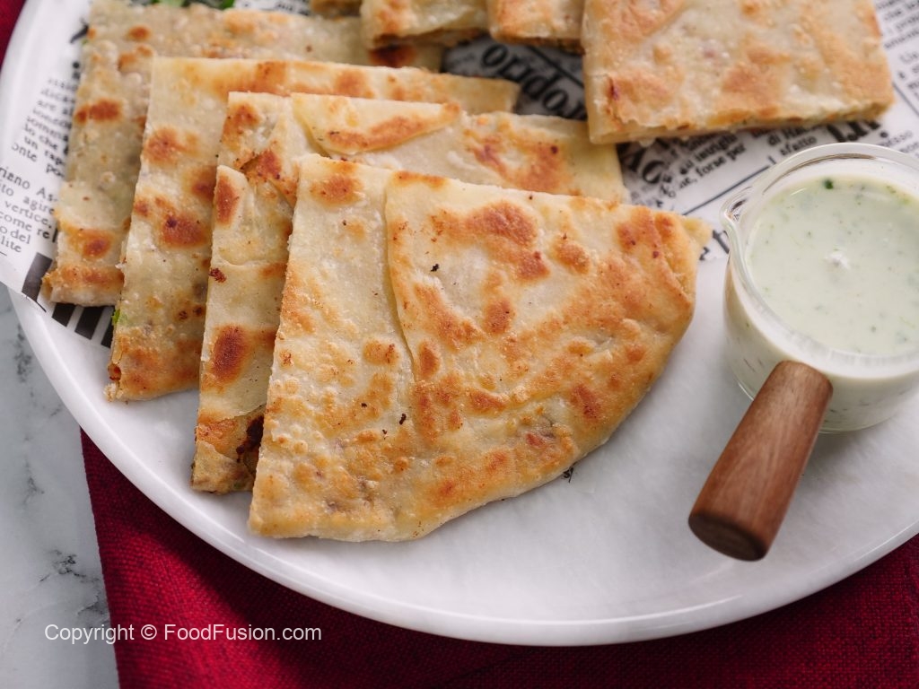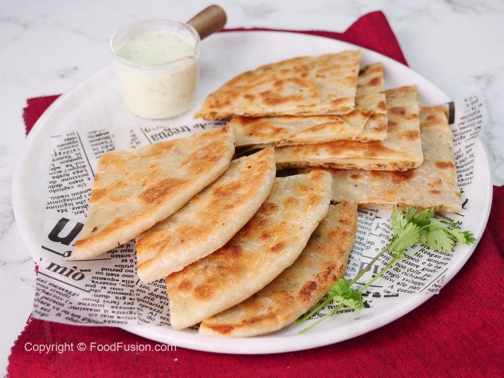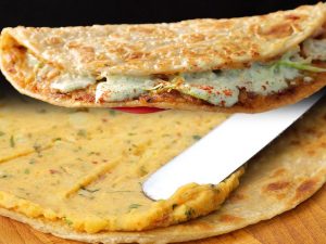 -Heat griddle,place paratha,add clarified butter & fry from both sides until golden brown (makes 6).