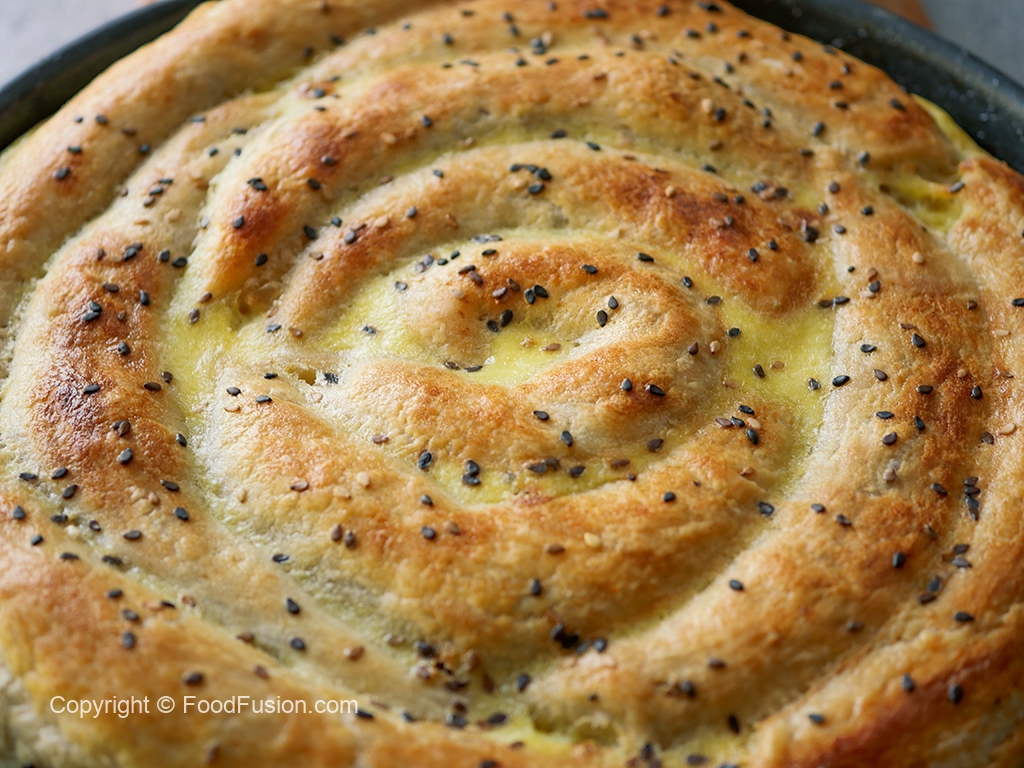 Remaining egg & yogurt mixture dal ker evenly pheela lein aur kalay & safed til chirak dein.