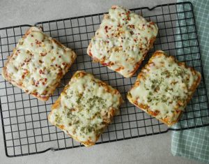 Hari chutney dal ker pheela lein,cheddar cheese,cooked chicken mixture,mozzarella cheese aur dried parsley dal ker chulha on karein aur dhak ker halki ancch per cheese melt hunay tak paka lein (approx. 2-3 minutes) & serve karein!