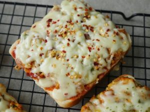 Pizza sauce dal ker pheela lein,chedder cheese,cooked chicken mixture,mozzarella cheese aur lal mirch crushed dal ker chulha on karein aur dhak ker halki ancch per cheese melt hunay taka paka lein (approx. 2-3 minutes) & serve karein!