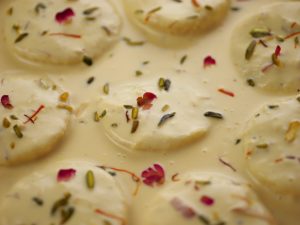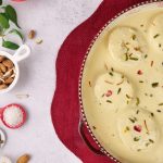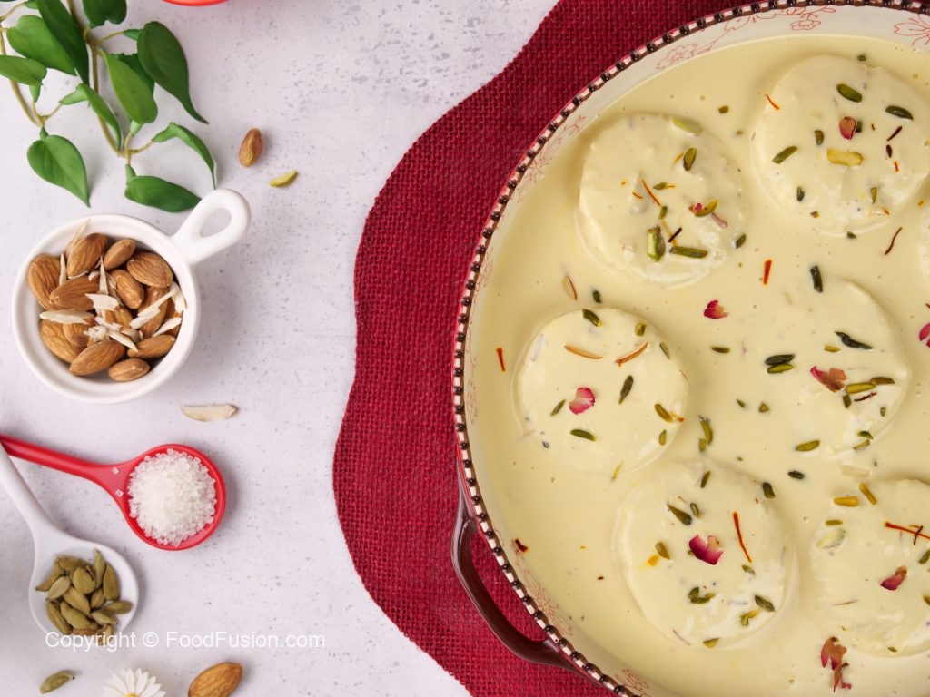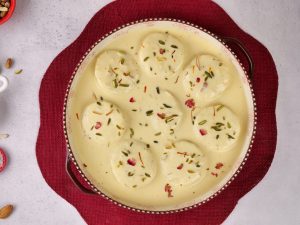 -Place them on serving dish,pour prepared malai milk & garnish with pistachios,almonds & serve!