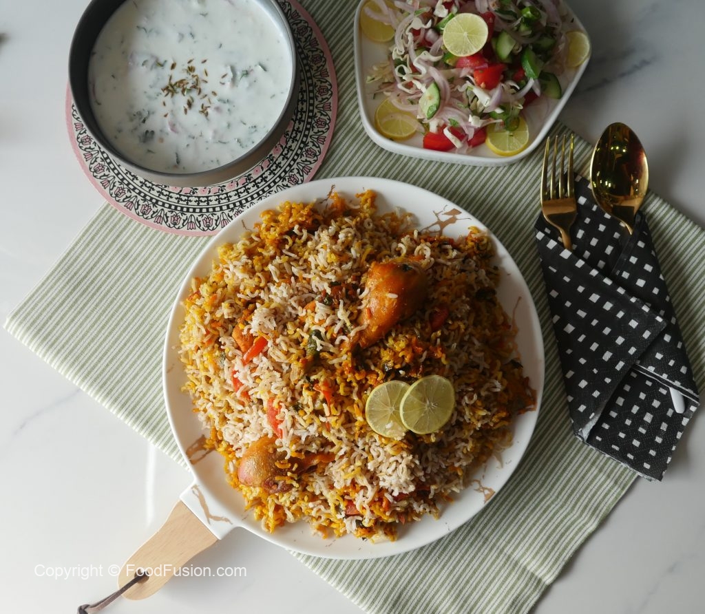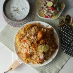 In a bowl,add tomatoes,fried onion,mint leaves,fresh coriander,dried plums,green chillies,cumin seeds, lemon juice,mix well & set aside.