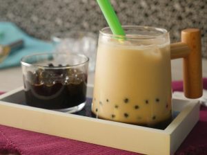 Add prepared boba pearls & boil on medium flame for 20 minutes (stir gently so it’s doesn’t stick to bottom) then turn off the flame,cover & let it rest for 15 minutes,strain and wash thoroughly with water.
