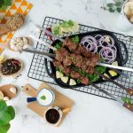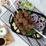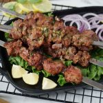 Marinated mutton ko metal skewers per laga lein aur jaltay hoye koyla per paka lein aur bech bech mein tayyar herbed makhan lagatay rahien.