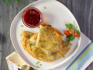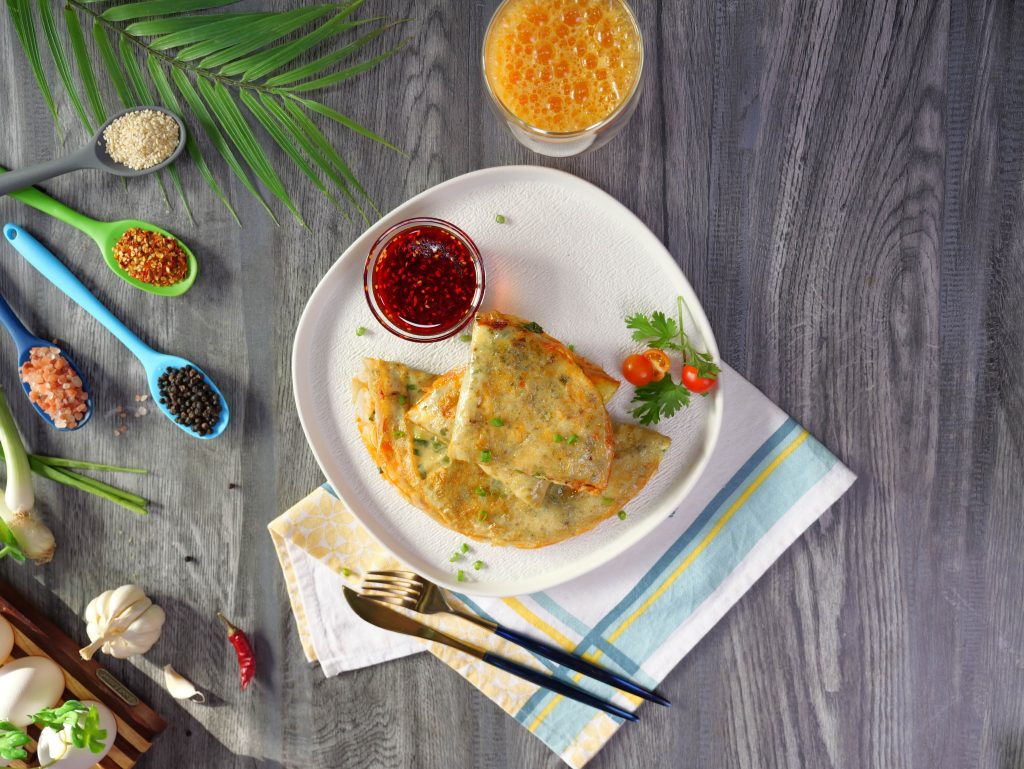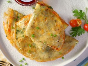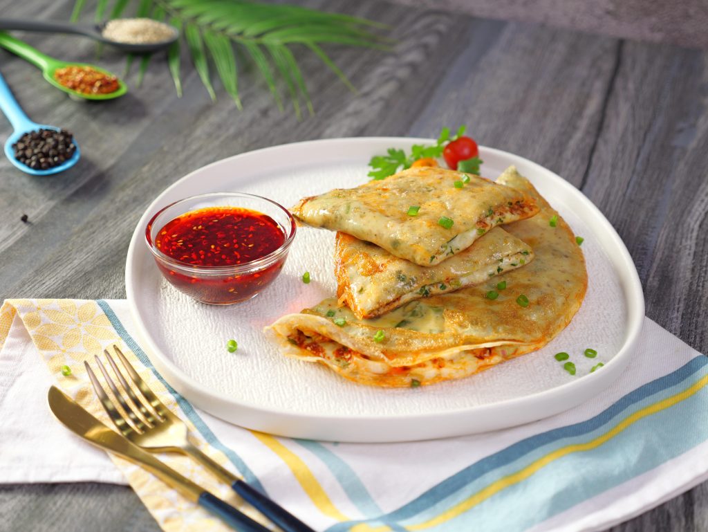 A fun twist on your regular omelette 🧀🔥 Made with rice paper for extra crunch, drizzled with chilli oil, and loaded with melty cheese for bold flavor in every bite. #breakfast #chillioil #omelette #foodfusion