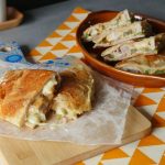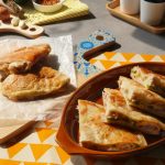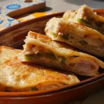 Paratha ki ek side per cheddar cheese,mozzarella cheese,cooked vegetables,fried fish pieces,mozzarella cheese aur cheddar cheese dal dein.
