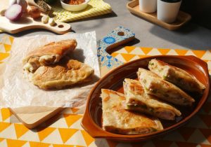 Tawa ki khali side per cheddar cheese aur mozzarella cheese dal ker stuffed paratha ko rakh dein aur golden brown hunay tak paka lein.