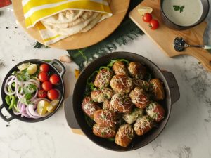 Heat sizzling plate,add onion rings,capsicum rings,fried gola kababs with oil,cheddar cheese,sprinkle fresh coriander & serve!