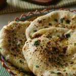 Heat griddle or iron pan,place naan (wet side down) and cook on low flame until it starts to bubble and bottom has browned then flip griddle and cook other side directly on the flame until it turns brown or charred.