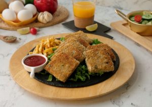 Frying pan mein cooking oil dal dein aur bread slice ko darmiyani ancch per dono sides sa golden brown hunay tak fry ker lein (2-3 minutes).