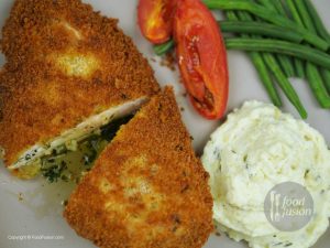 Now fill the pocket of chicken breast with seasoned butter filling and close the opening and refrigerate for 15 minutes.