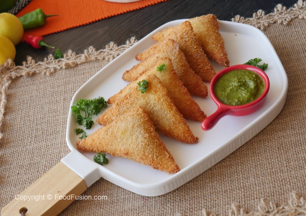 Brush water,place cheese slice,add prepared chicken filling (1 tbs),fold to make a triangle shape,press and seal the edges properly (makes 20-22).