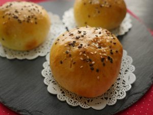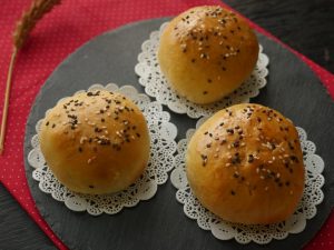 With the help of the brush,apply egg on prepared buns and sprinkle sesame seeds.