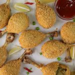 -Coat chicken drumsticks with all-purpose flour,dip in whisked eggs then coat with cornflakes.
