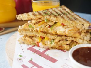 Sandwich ko flip ker lein aur halki ancch per cheese melt ho janay tak grill ker lein (makes 4 sandwiches).