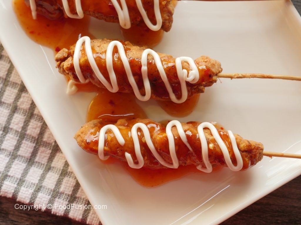 Tayyar sweet chili sauce aur mayonnaise ka saath serve karein.