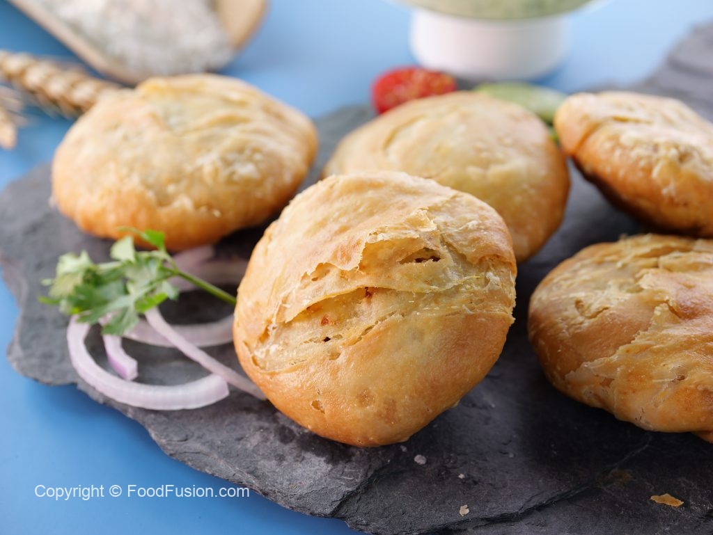 -In a wok,heat cooking oil (100°C) & fry stuffed kachoris on very low flame until golden & crispy (makes 12) & serve!