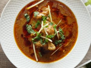 On serving plate,add nihari,tarri (chili oil),ginger,fresh coriander,lemon juice & serve.