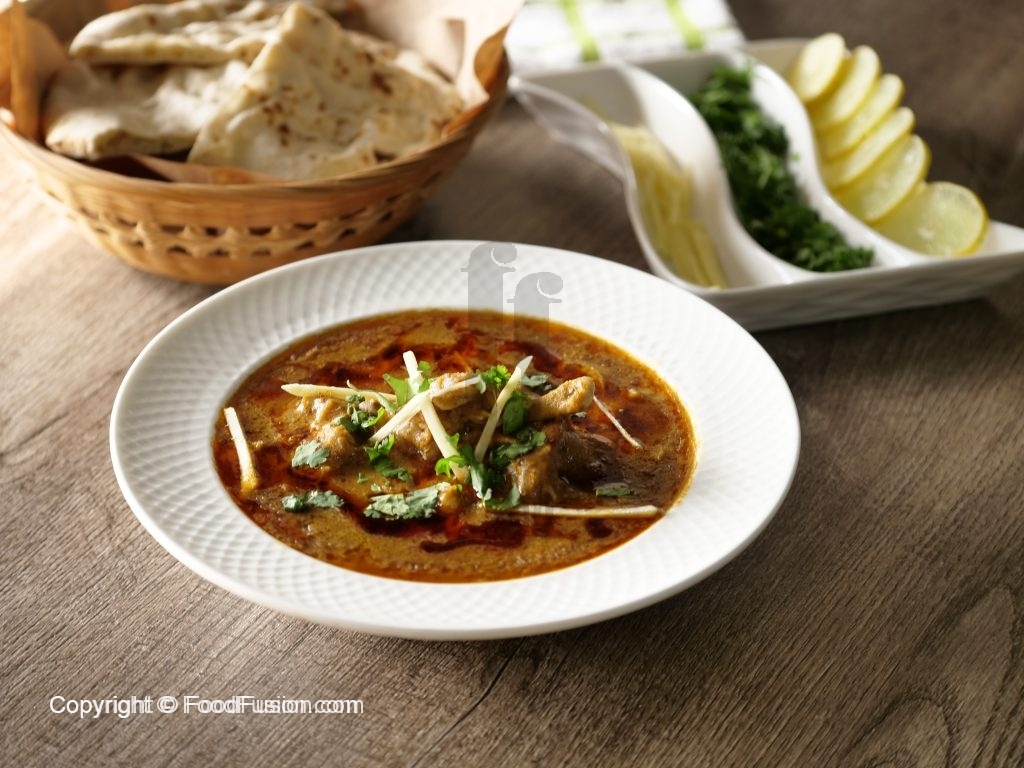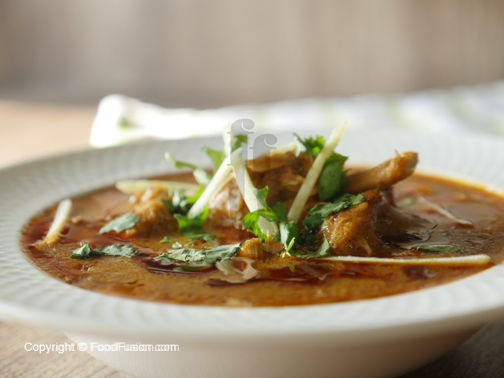 Serving plate mein nihari,tarri (chili oil)adrak,hara dhania aur lemon juice dal ker serve karein.