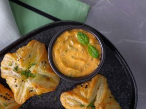 -Serve chicken pyramids with prepared sauce!