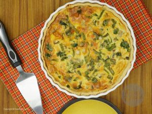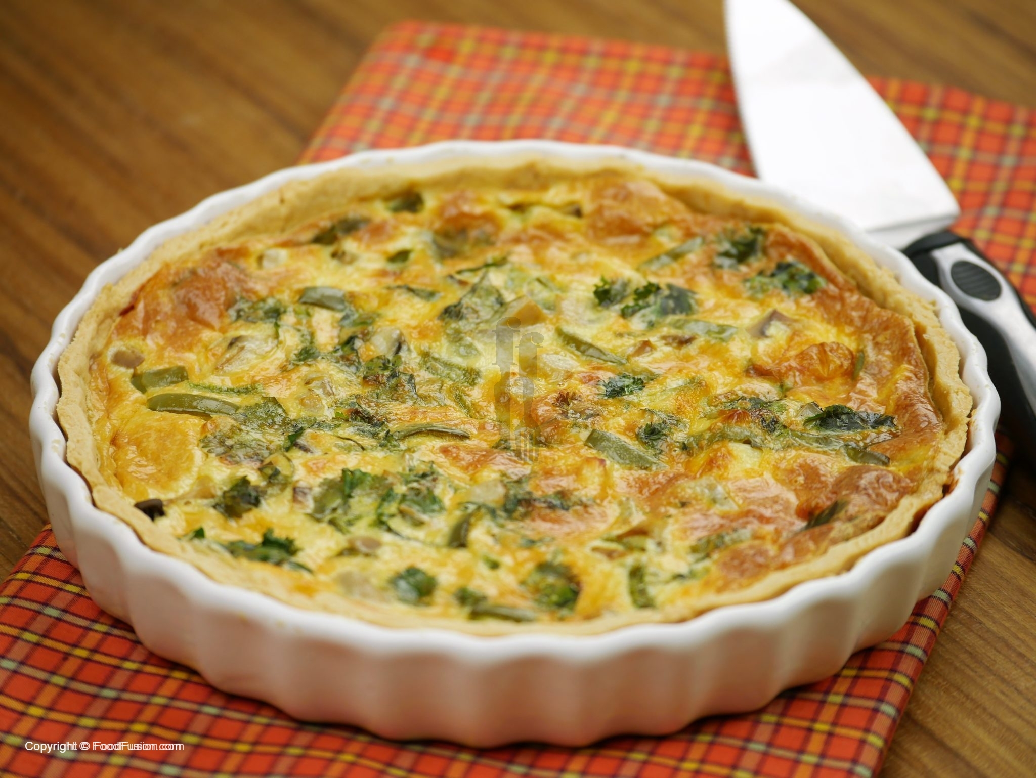 Egg mixture ko pour karein,preheated oven mein 180 C per crust golden brown hunay tak bake ker lein.