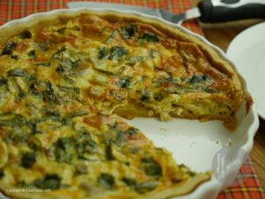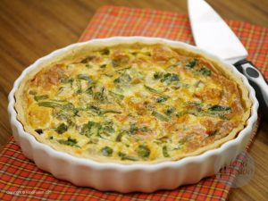 Pour egg mixture and bake in preheated oven at 180 C until crust is golden brown.