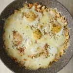 Spread evenly the cooked mixture,make holes and add eggs one by one and sprinkle salt,black pepper powder,dried parsley and cook on low flame for 2 minutes.