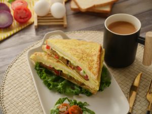 Pyaz,tamatar,hari mirch,hara dhania aur cheese slices dal dein aur bread slice ko flip ker lein aur halki ancch per cheese melt hunay tak paka lein.