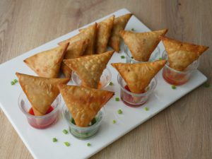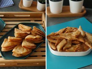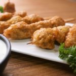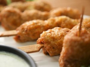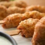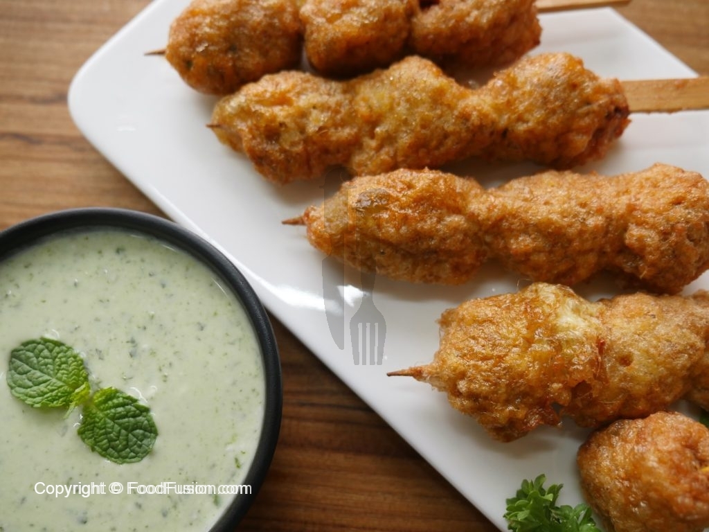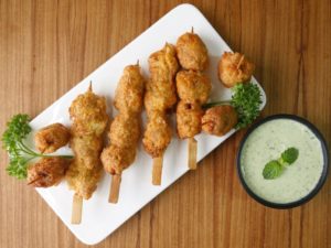 Prepare all sticks and coat in bread crumbs then dip into beaten eggs.