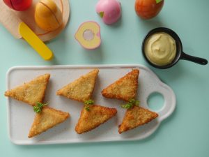 Another recipe to treasure for your kids lunch box. Make these tasty Chicken Triangles and freeze for a quick fry in the morning. #HappyCookingToYou