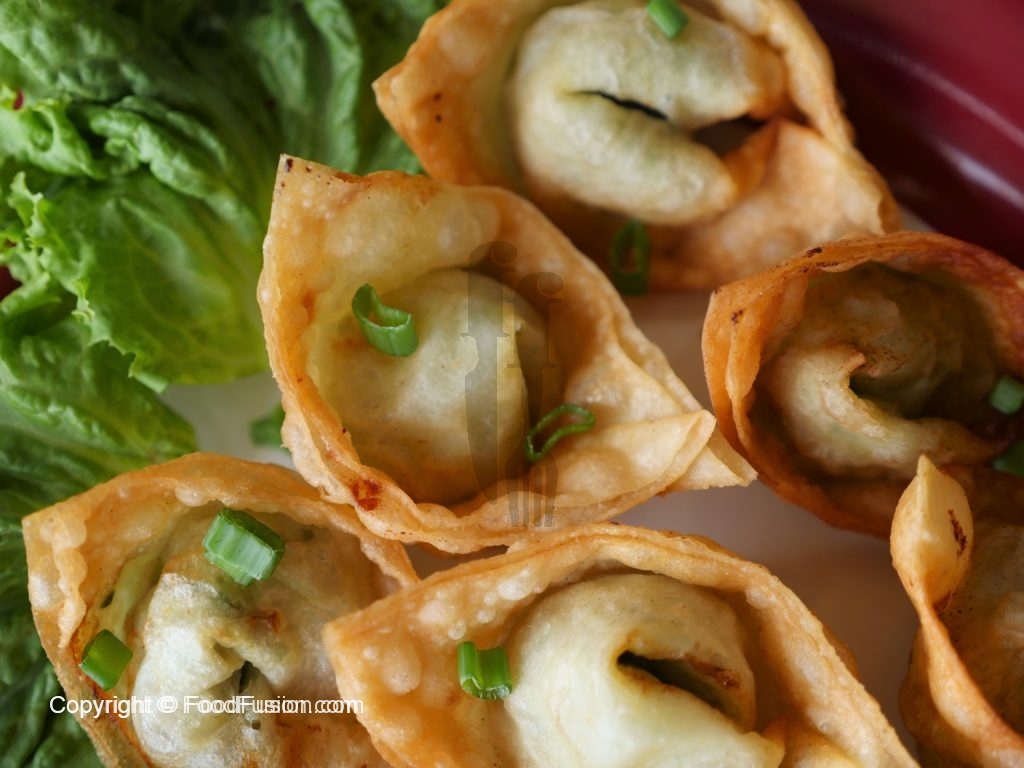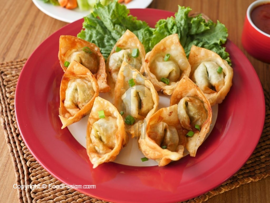 Take wanton wrap,add 1 tbs mixture in the center,apply egg at the edges,fold in triangular shape & seal all sides.