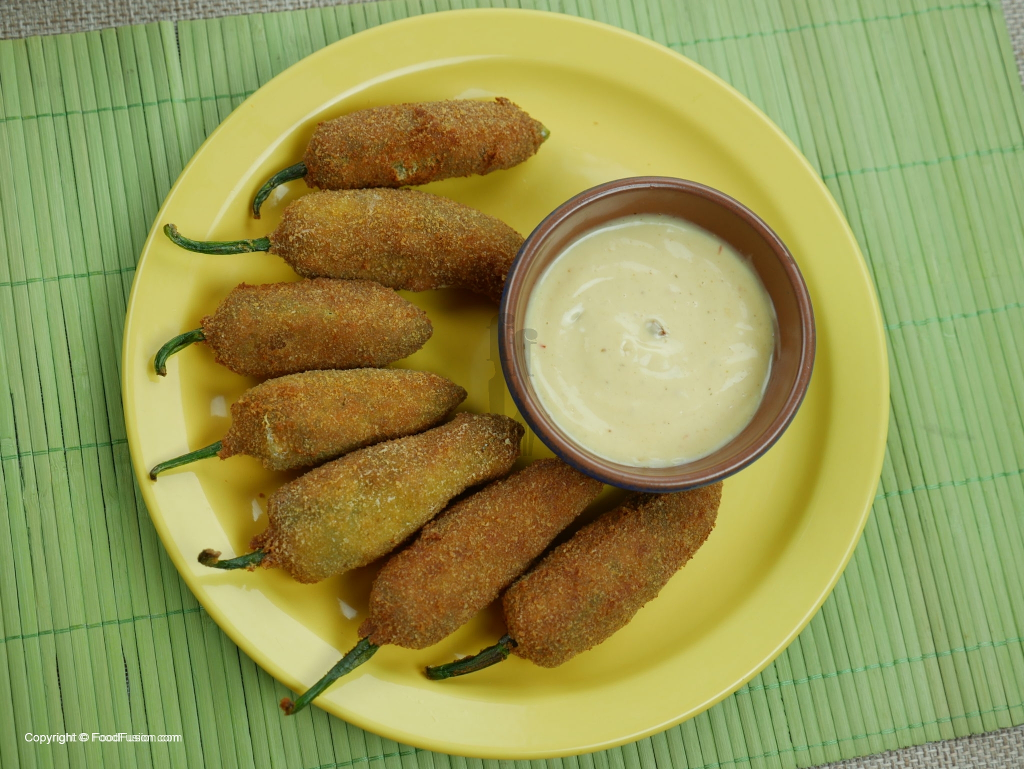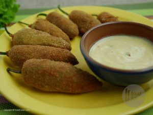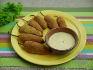 Phir bari bari mirchon ko chamchay ki madad se pehlay maiday main, phir ande main aur phir breadcrumbs